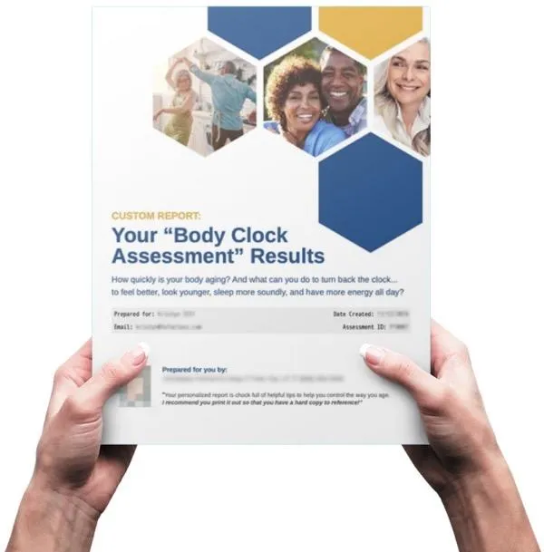 Your report is chock full of helpful "anti-aging" information about how to get better sleep, boost your energy and fat-burning ability, increase HGH naturally, improve muscle recovery, joint aches, increase libido, and much more! So I recommend you print it out so that you have a hard copy to reference!